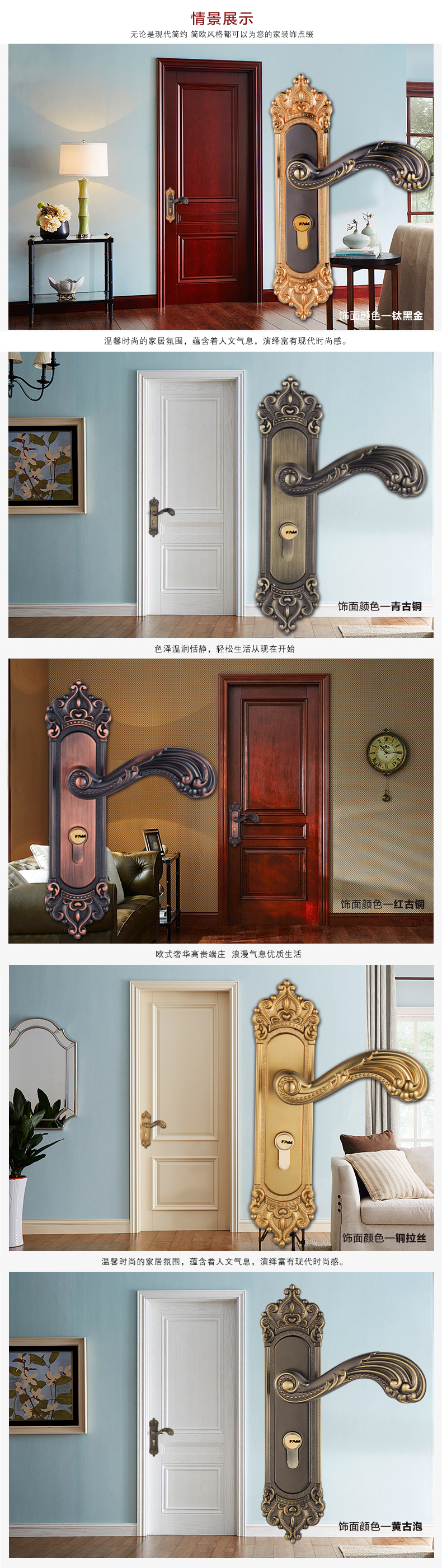 三件套装室内卧室房实木门锁具门把手锁具皇冠头