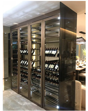 黑钛拉丝无指纹不锈钢酒柜酒架 新中式时尚简约家居装饰定制