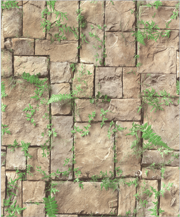 玉兰墙纸 清新田园仿真墙壁砖缝长草墙纸咖啡厅书房阳台室外壁纸